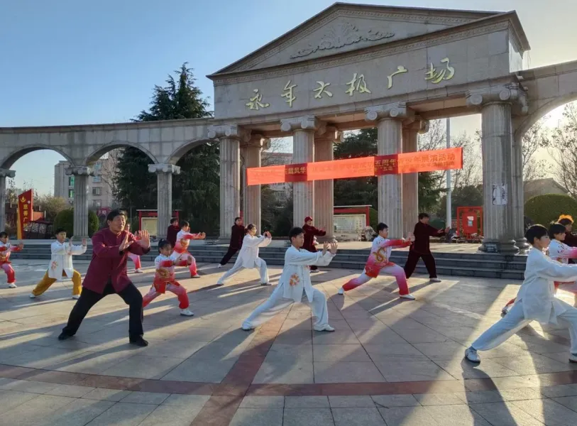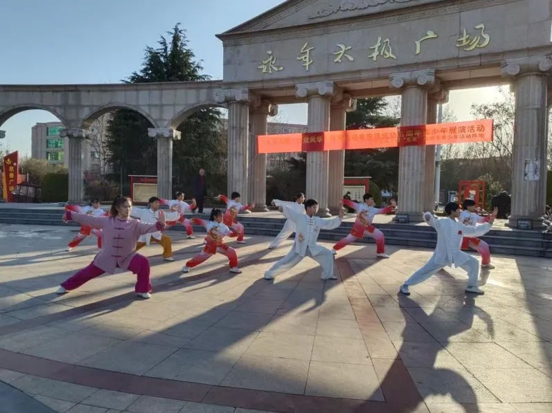 1月3日,邯郸市永年区关工委“五老”赵现平青少年活动阵地带领青少年在永年太极广场进行庆祝太极拳申遗成功五周年青少年展演活动。