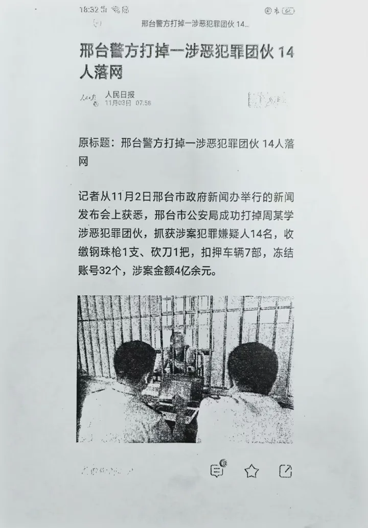 我是实名举报人同时也是本案件中最大的受害者,在邢台市公安局将我所举报的周兵学团伙黑社会团伙进行打击除恶后;我的2000多万元的财产损失不翼而飞了,一审、二审法院及一、二审检察院在周团伙的保护伞的保护和操作下,大事化小、小事化了。