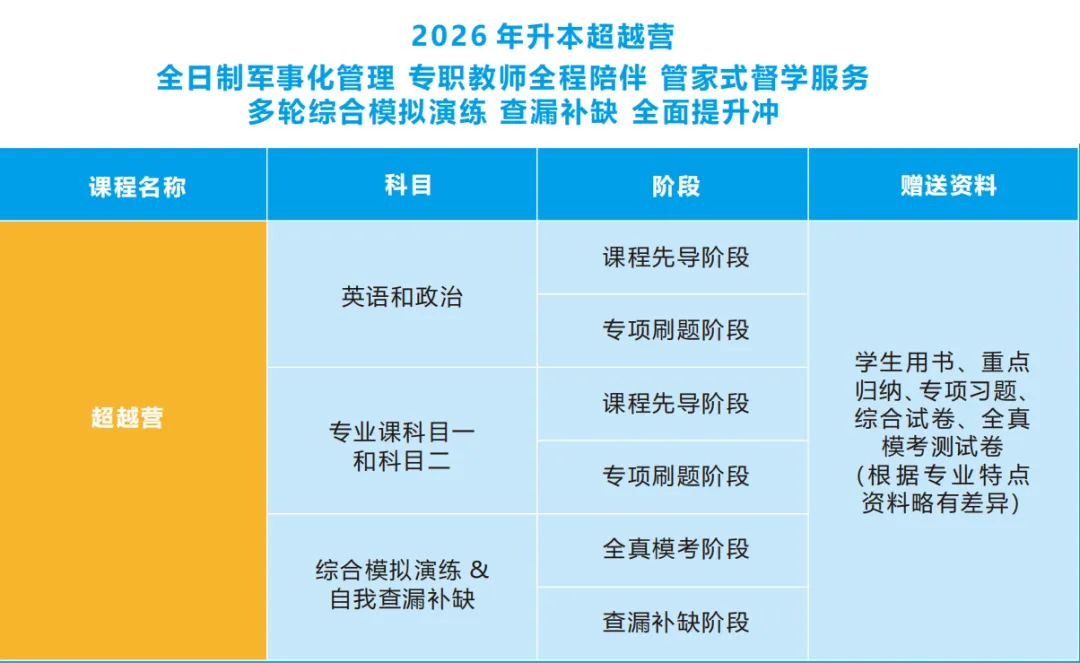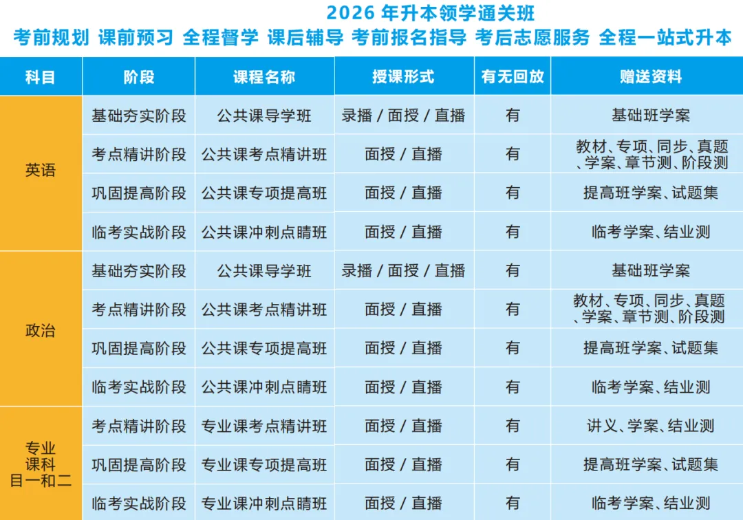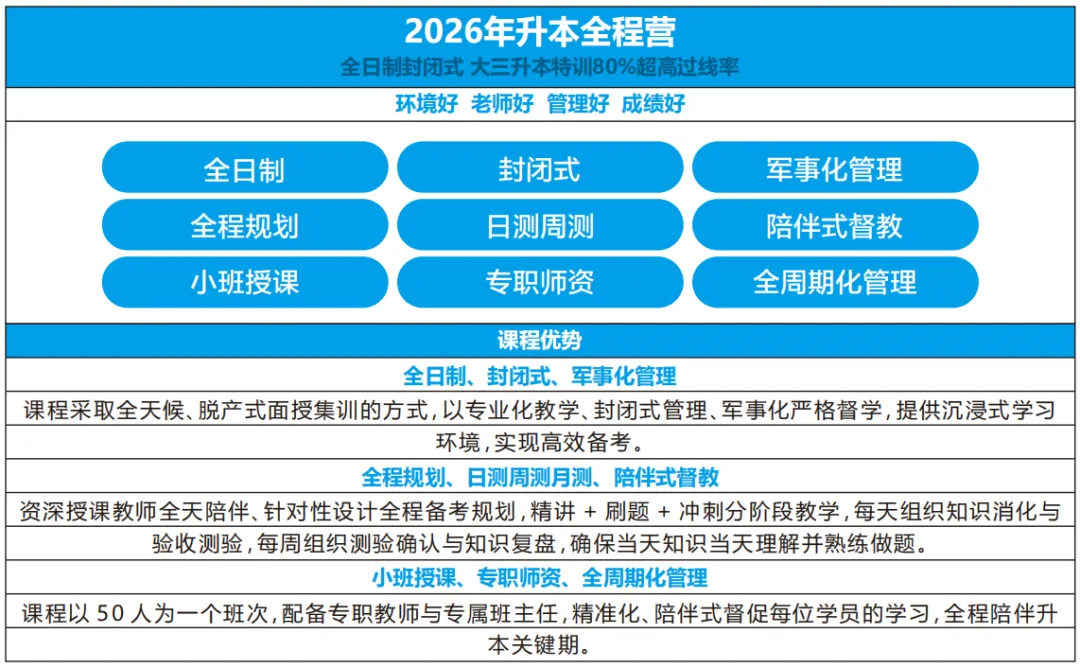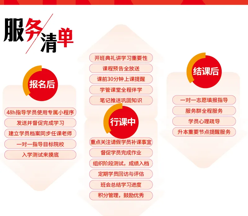 课程服务:学习规划、全程督学、课后老师答疑辅导、免费志愿填报等,一站式服务为你升本学习保驾护航