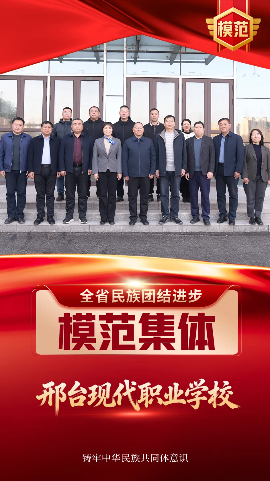 2025年11月25日,邢台现代职业学校被中共河北省委、河北省人民政府表彰为“河北省民族团结进步模范集体”。