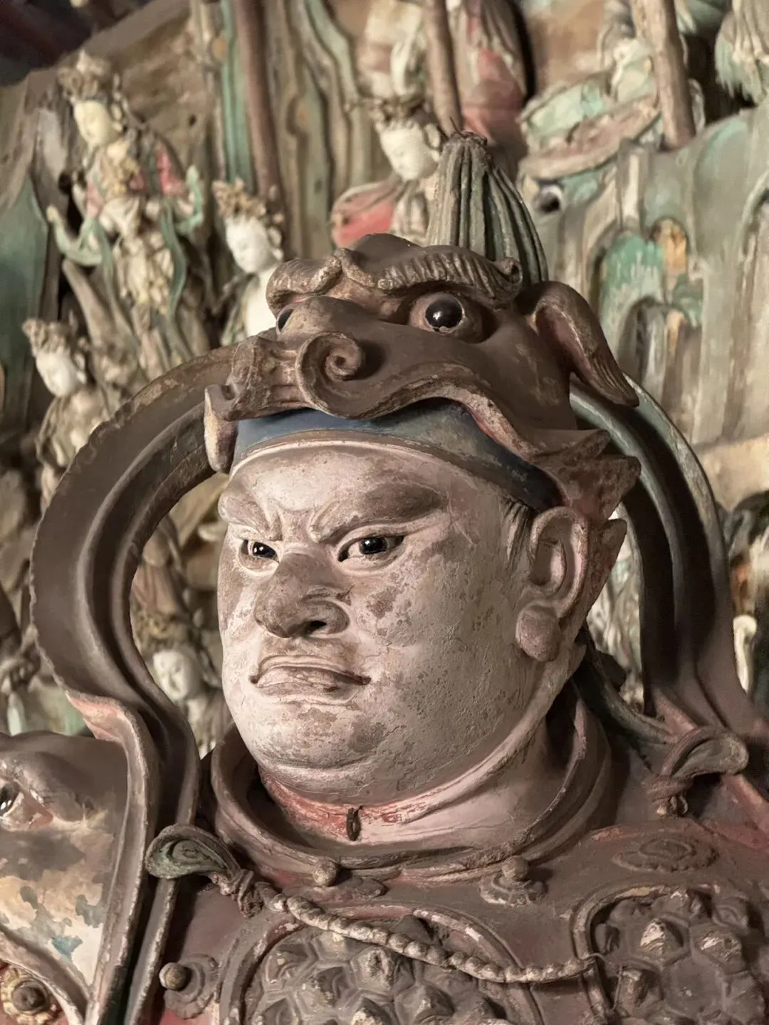 韦陀像的英武、渡海观音的从容、悬塑的精巧绝伦……色彩历经数百年依旧绚烂,表情与衣纹充满动感的生命力。