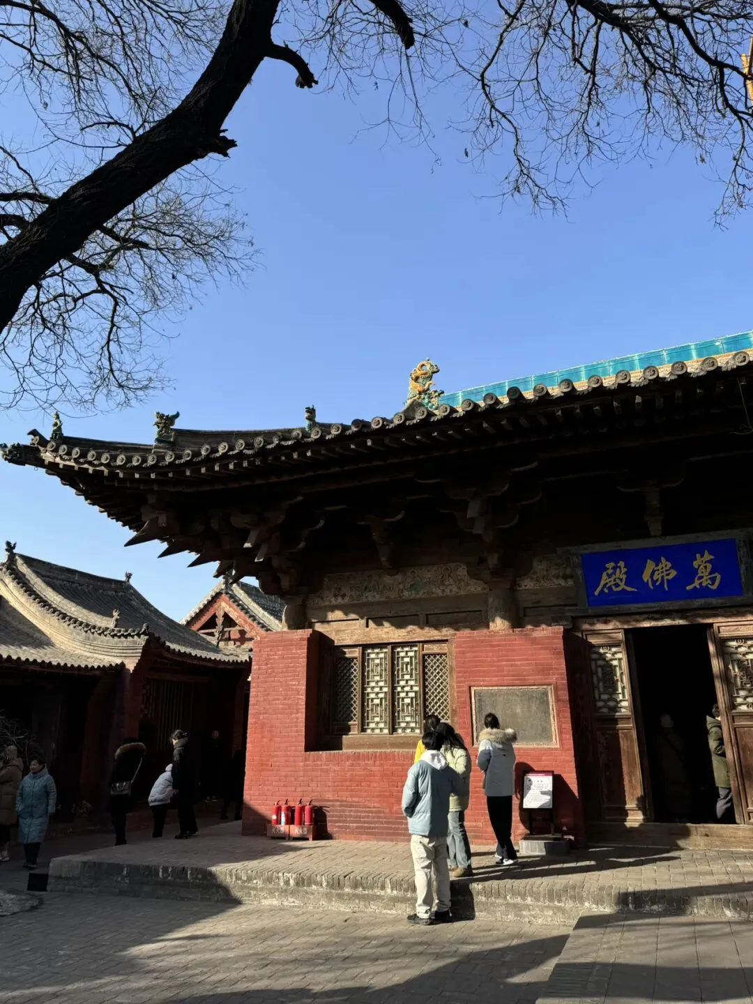 与双林寺的华丽繁复不同,镇国寺的五代时期建筑与彩塑,展现的是一种古朴、雄浑的极致美。那种历经千年风雨而不倒的架构气度,让人心生安定。在这里,热闹的年味彻底远去,只有古木、大殿与历史深处的风声。