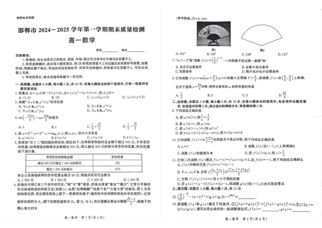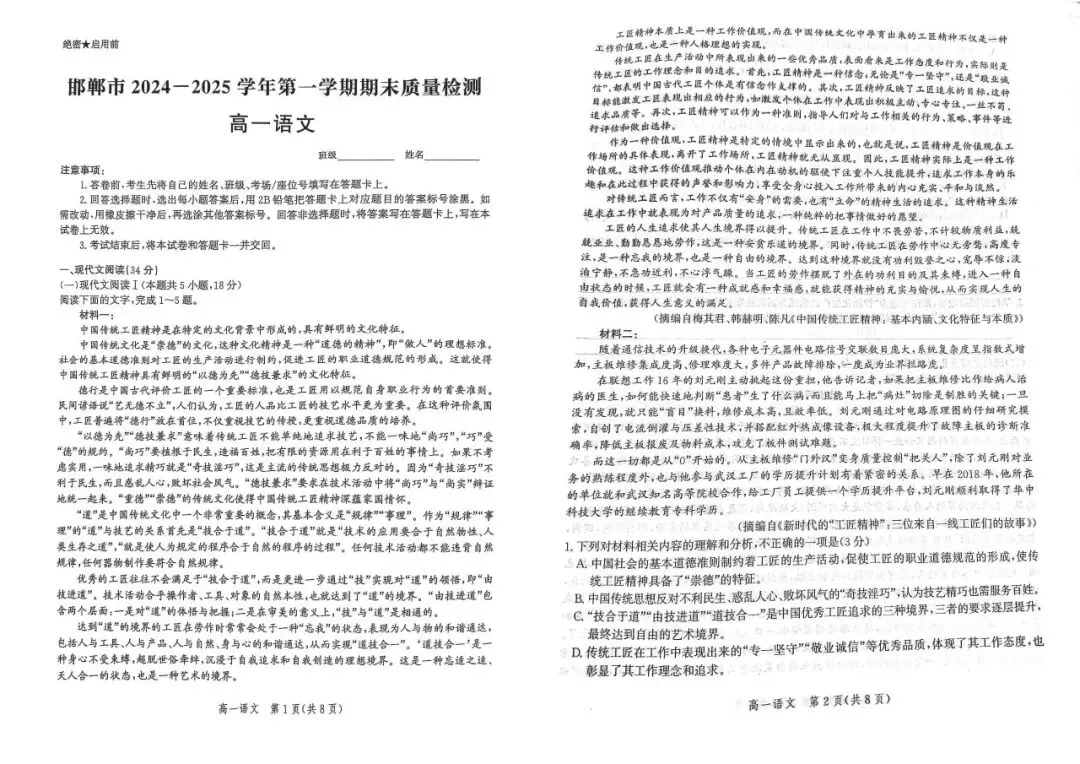 深知您的焦虑,我们特意整理了邯郸市 24-25 学年高一上册语文 / 数学期末真题卷!这份真题精准贴合河北本地教学大纲与命题趋势,覆盖语数核心考点 —— 语文的古诗文理解、现代文思辨阅读,数学的函数应用、立体几何等重点题型全囊括。让孩子提前练手真题,既能熟悉考试节奏、摸清难度梯度,又能精准定位知识漏洞,避免盲目刷题,让复习更高效、更有针对性!