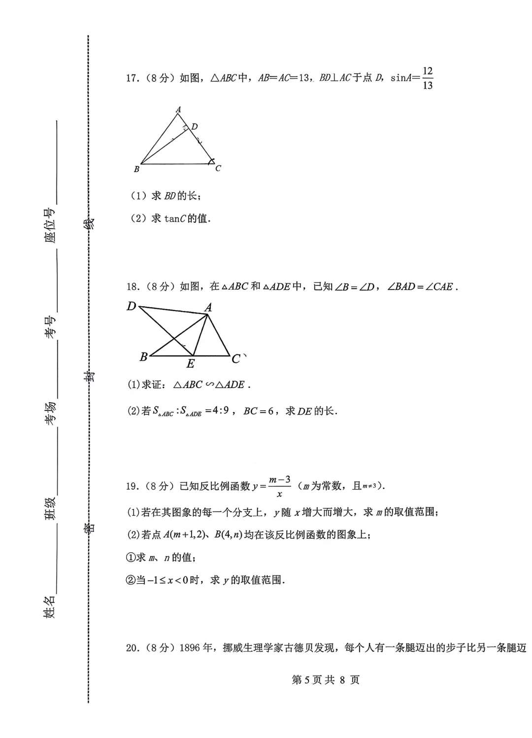 邯郸市扬帆中学初三第三次月考数学试卷