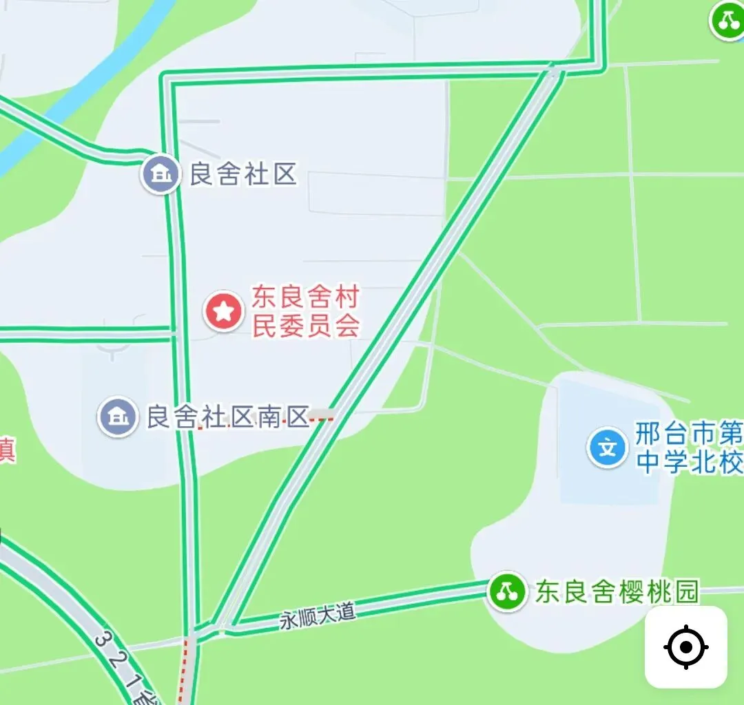 经实地考察,钢铁路北延段为东良舍村东段,路面为双向六车道,在良舍村北变窄后通过白马河生产桥可到白马河北岸的口头村。