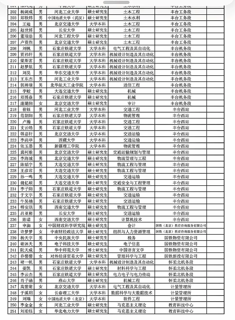 这个名单就是国铁集团在京单位接收毕业生的一个信息公示。也就是说,你进入这个名单了,你一个是有工作了,再一个关键就是你有北京户口了。