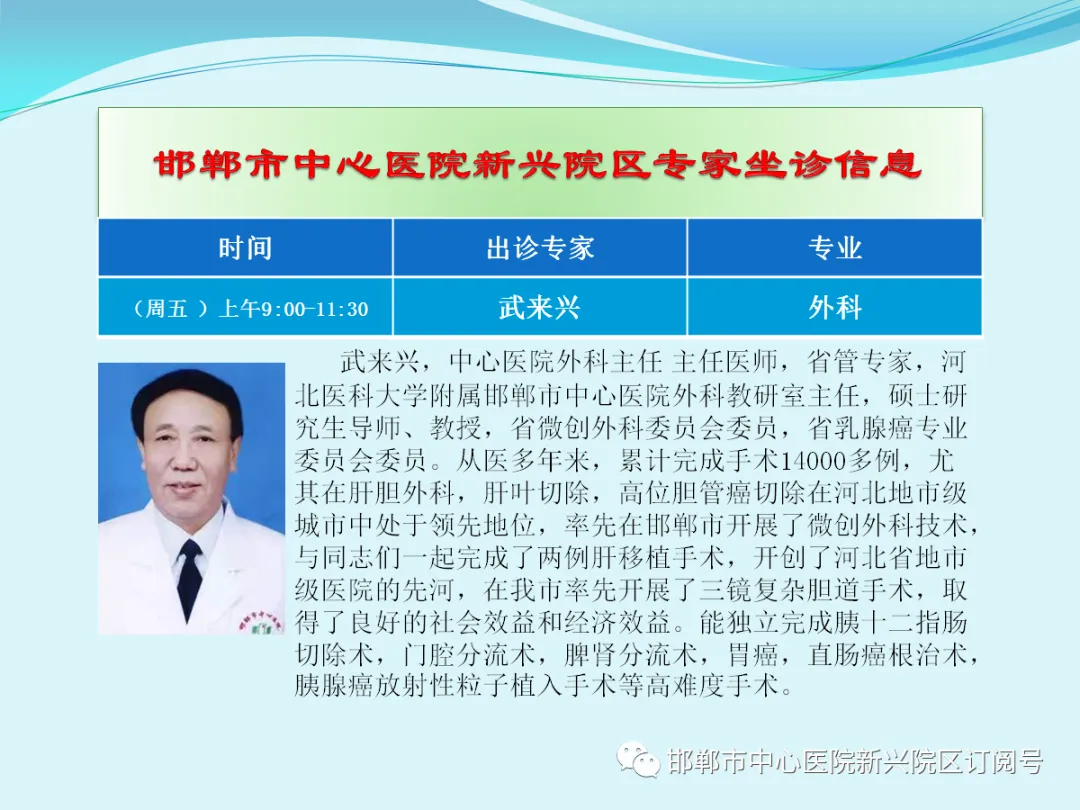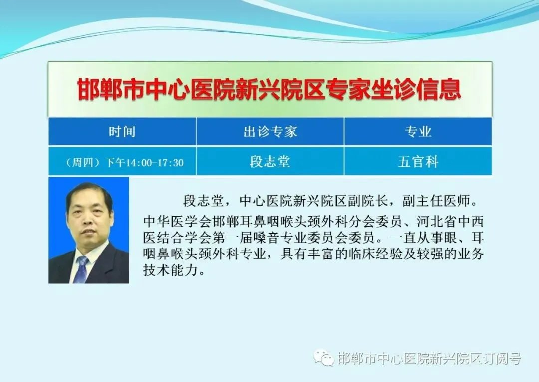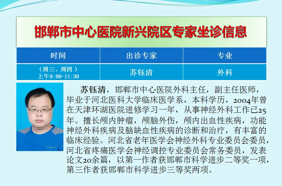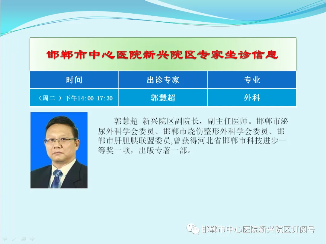 邯郸市中心医院新兴院区,每天都有知名专家出诊,请留心关注专家出诊信息,欢迎您前来院区就诊、咨询或参观。