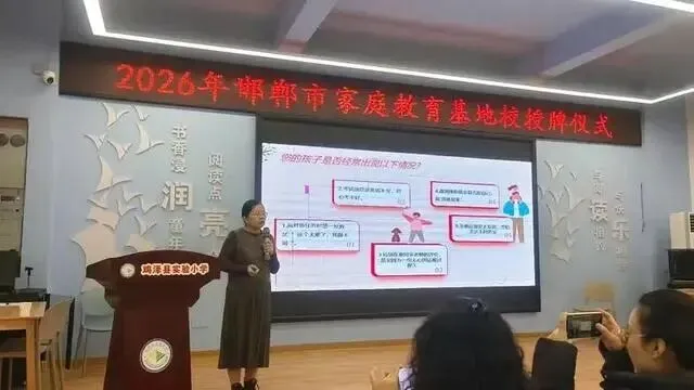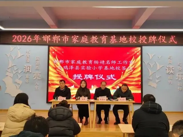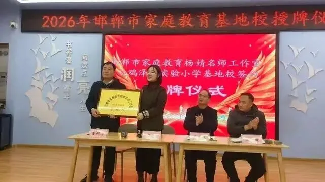 仪式上,鸡泽县实验小学校长董利房与邯郸市家庭教育杨婧名师工作室主持人杨婧共同完成签约与授牌。双方将在家庭教育课程开发、家长课堂建设、师资能力培训等方面开展深度协作,共同提升区域家庭教育服务水平。