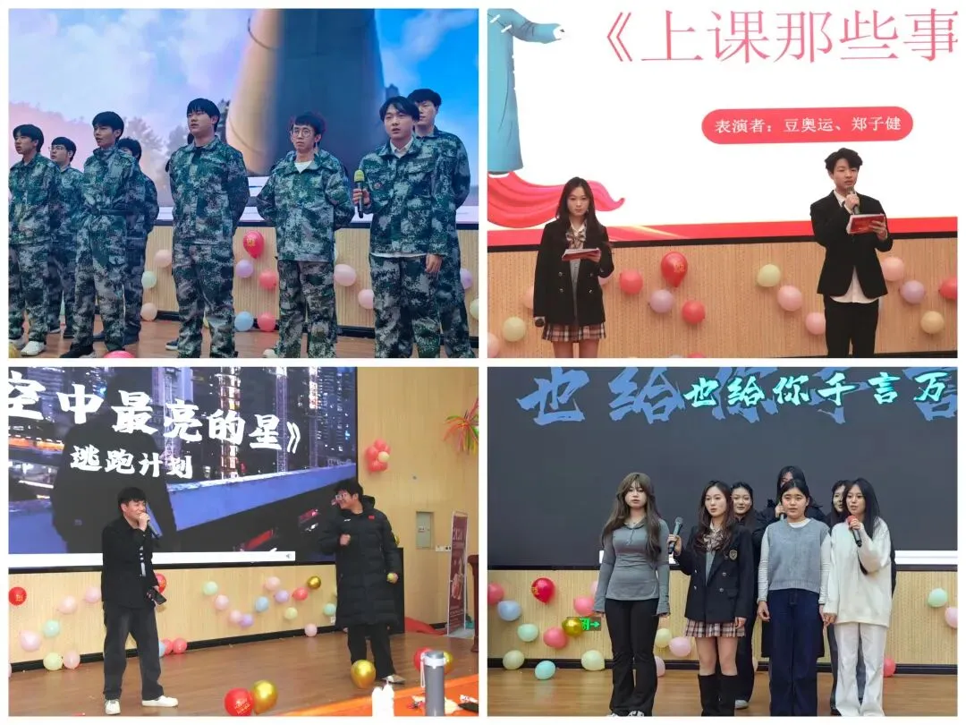 整场晚会节目形式多样、内容贴近校园生活。相声《上课那些事》以幽默风趣的语言,生动演绎了课堂内外的趣事点滴,引发现场阵阵欢笑与共鸣;歌曲《夜空中最亮的星》则用温暖治愈的旋律,传递出学子们在追梦路上彼此照亮、并肩前行的力量。