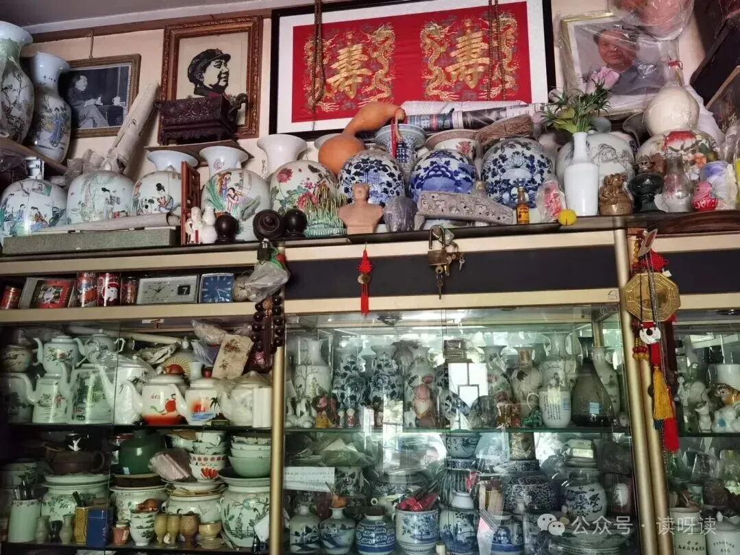 抬头一瞧瓷罐子茶壶老热水瓶啥的从脚边一直码到房顶。