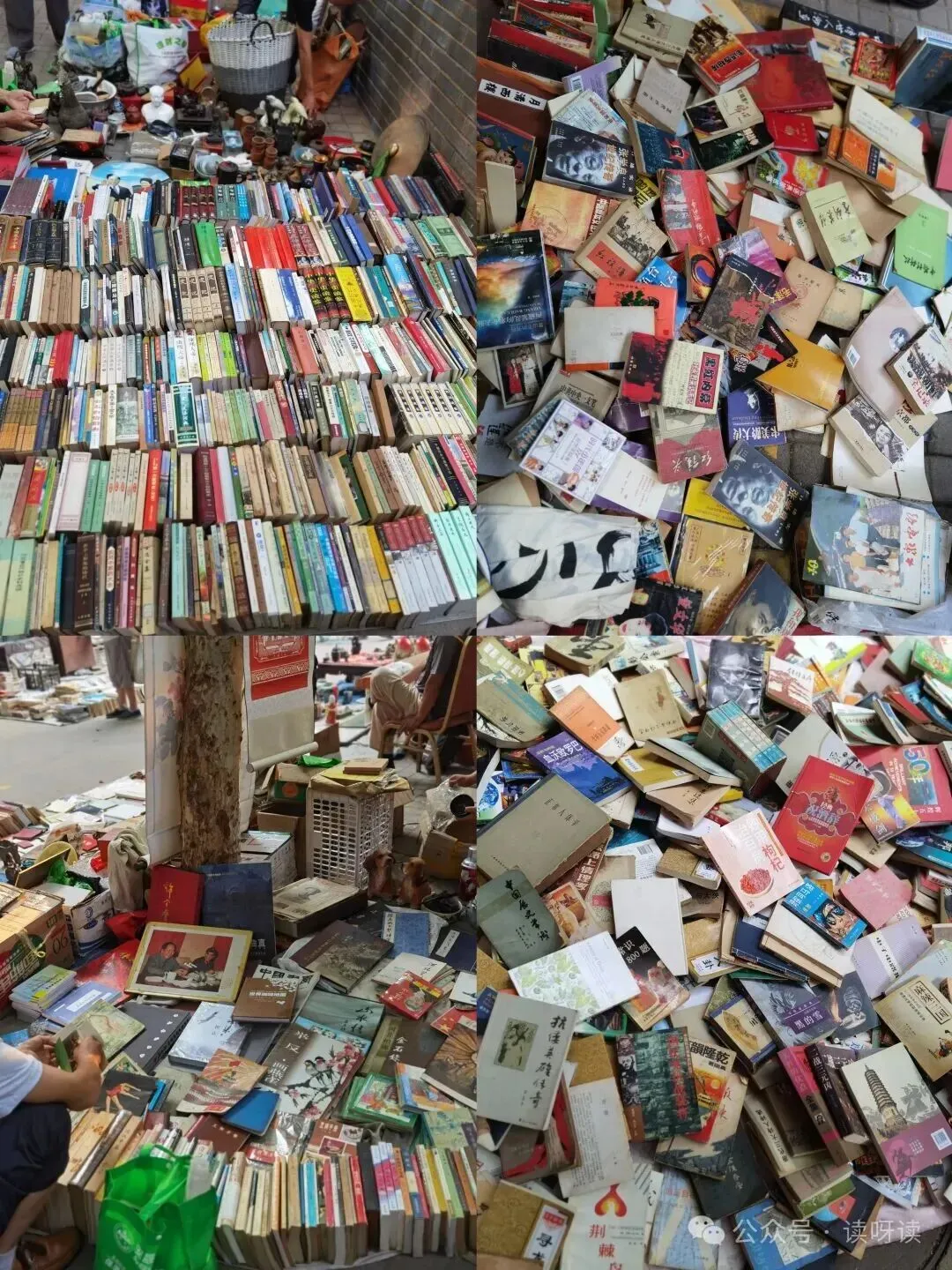 有的摊主干脆拿编织袋往外一倒书哗啦一声全撒开。