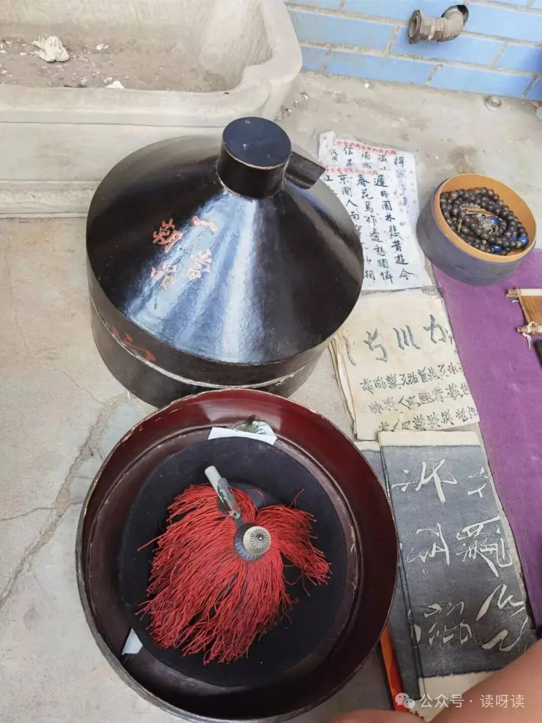 柜子顶上还靠着老照片和写着大红字的牌匾。