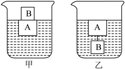 19. 如图所示,AB两物块以不同方式组合,分别静止在甲、乙两种液体中,由此可判断