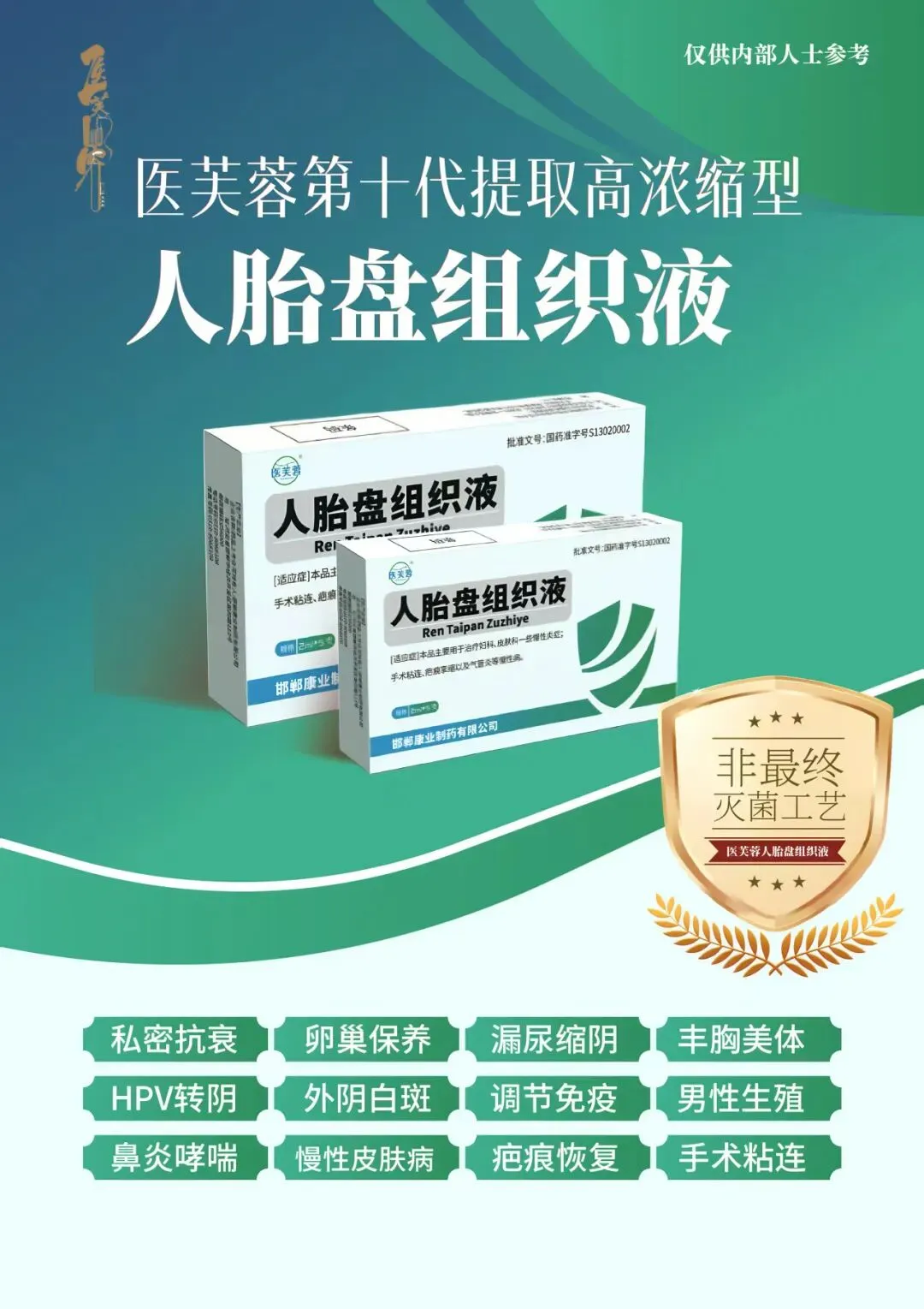 蓝海市场大,当下新兴生物细胞国药准字制剂。高浓缩、含量足、专利提纯工艺,80年临床文献。在免疫力基础上,用于治疗妇科、皮肤科一些慢性炎症;手术后粘连、疤痕挛缩以及气管炎等慢性病,大量真实案例供市场使用。