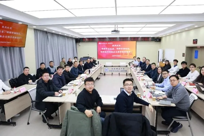 1月6日,邯郸市-北京科技大学校企科技成果供需对接会在冶金生态楼616顺利召开,会议围绕邯郸钢铁产业转型升级中的关键共性问题开展需求对接与协同研讨,推动形成可落地的合作方向与后续推进机制。邯郸市发改委三级调研员任和平,邯郸市钢铁行业创新研究院(以下简称“钢研院”)执行院长张先贵,学校冶金学部主任张建良出席会议。