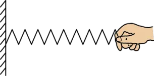 2. 如图所示,一根弹簧一端固定在竖直墙上,在弹性限度内用手水平向右拉伸弹簧