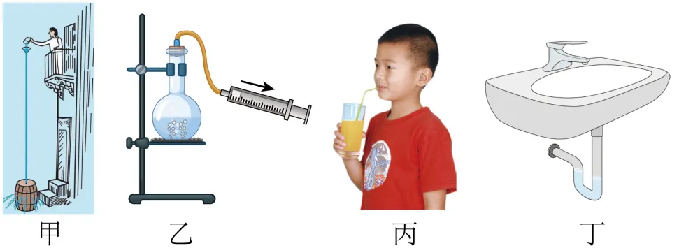 C. 图(丙)用吸管喝饮料时,瓶里的饮料是被“吸”上来的