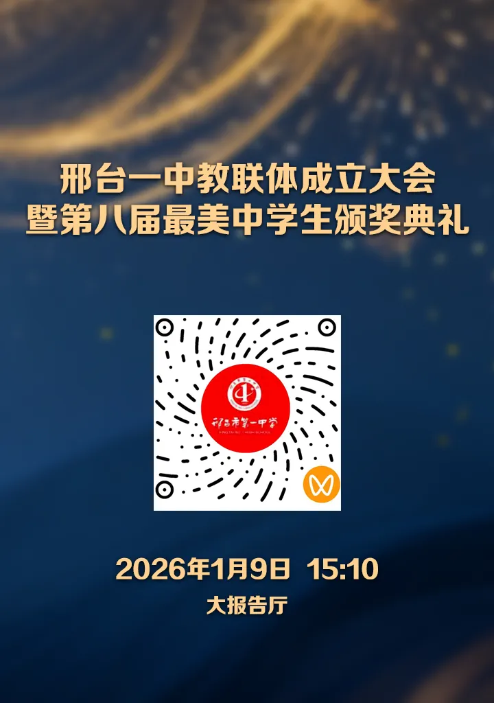 活动时间:2026年1月9日下午15:10——17:00。敬请微信扫码预约,锁定邢台市第一中学视频号直播,我们不见不散!