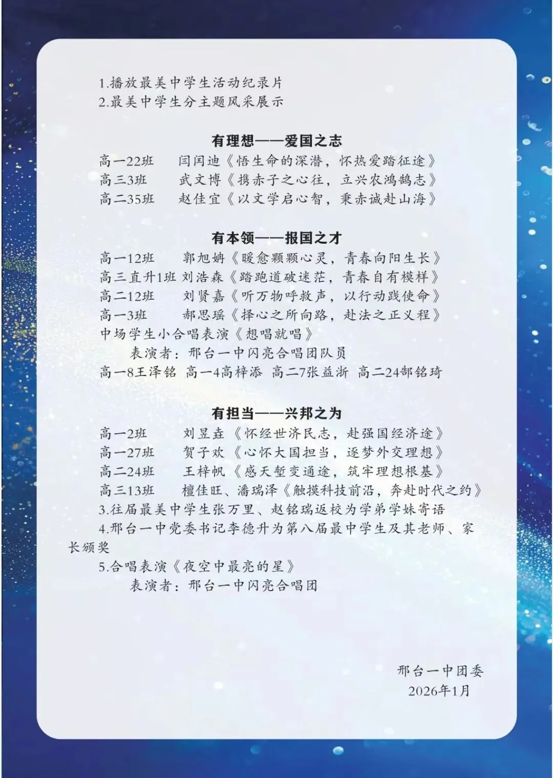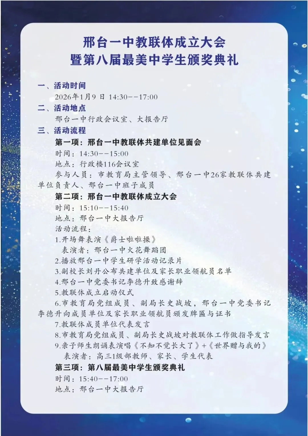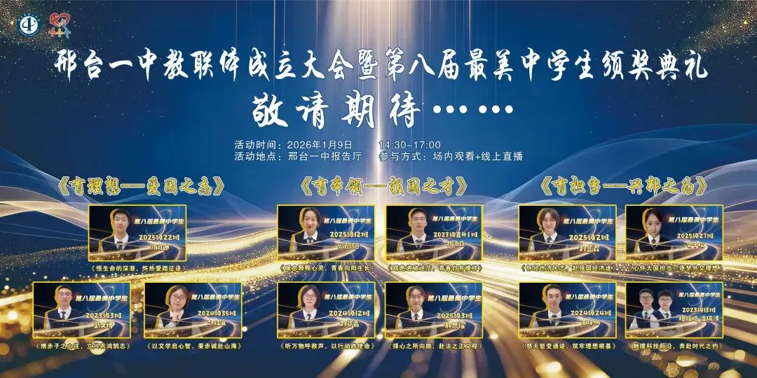 点击预约!1月9日15:10有直播!邢台一中教联体成立大会暨第八届最美中学生颁奖典礼,精彩不容错过!