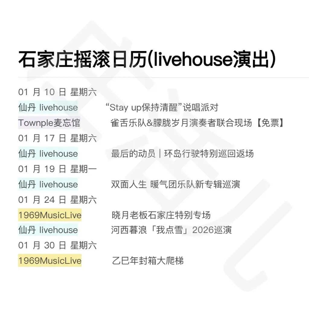 >石家庄摇滚日历(Livehouse演出)1.8更新