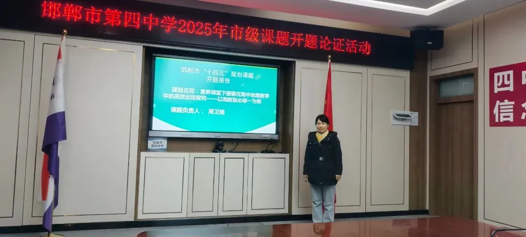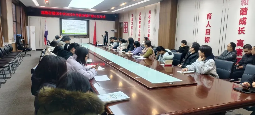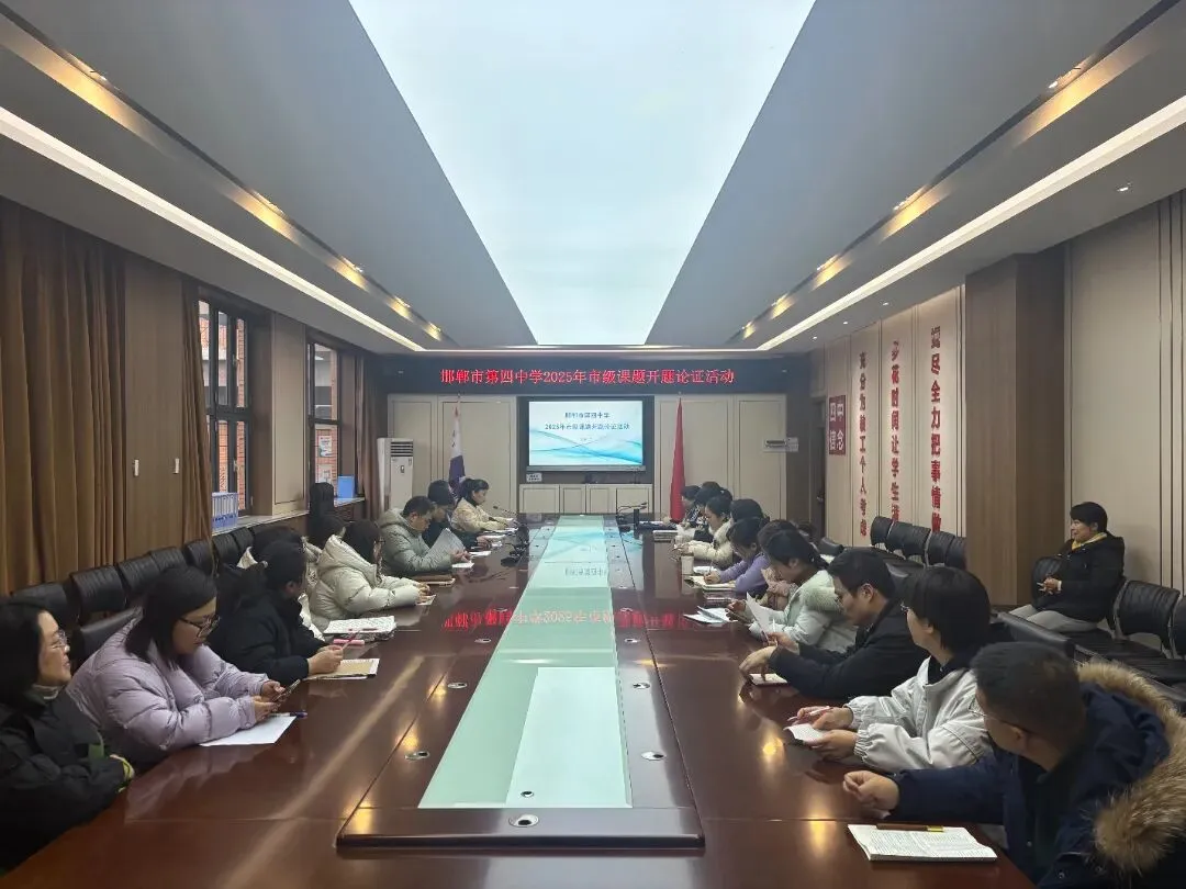 1月6日,邯郸市第四中学2025年市级课题开题论证活动在学校会议室如期举行。邯郸市教育科研联合体专家组成员杨喜玉、李力刚、赵祥来应邀莅临指导,学校教学处副主任贵博主持会议,我校8项市级立项课题主持人及课题组核心成员参加活动,共同开启教育科研创新探索新征程。