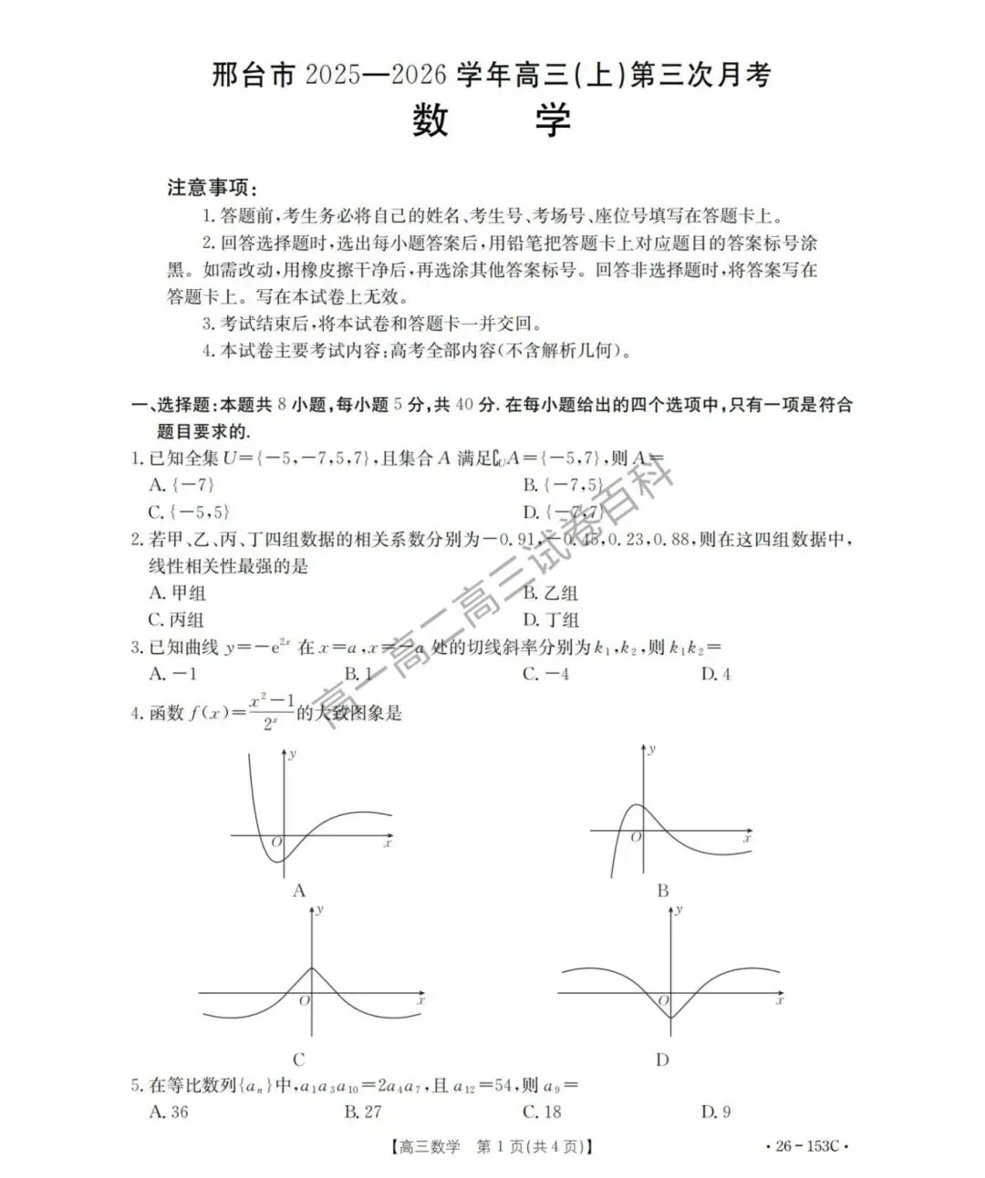 2025-2026学年高三上学期