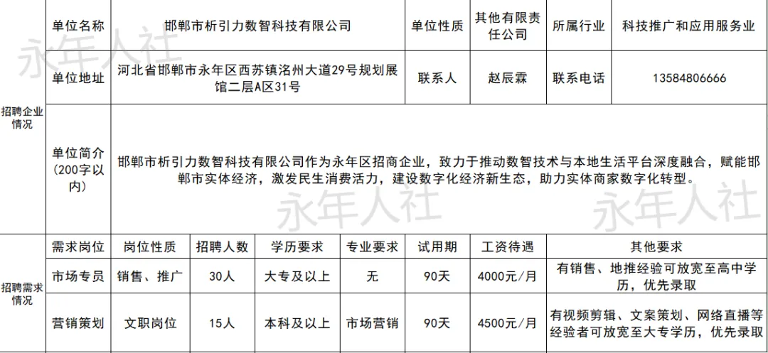 邯郸招工网(1月9日)邯郸市人才招聘信息!