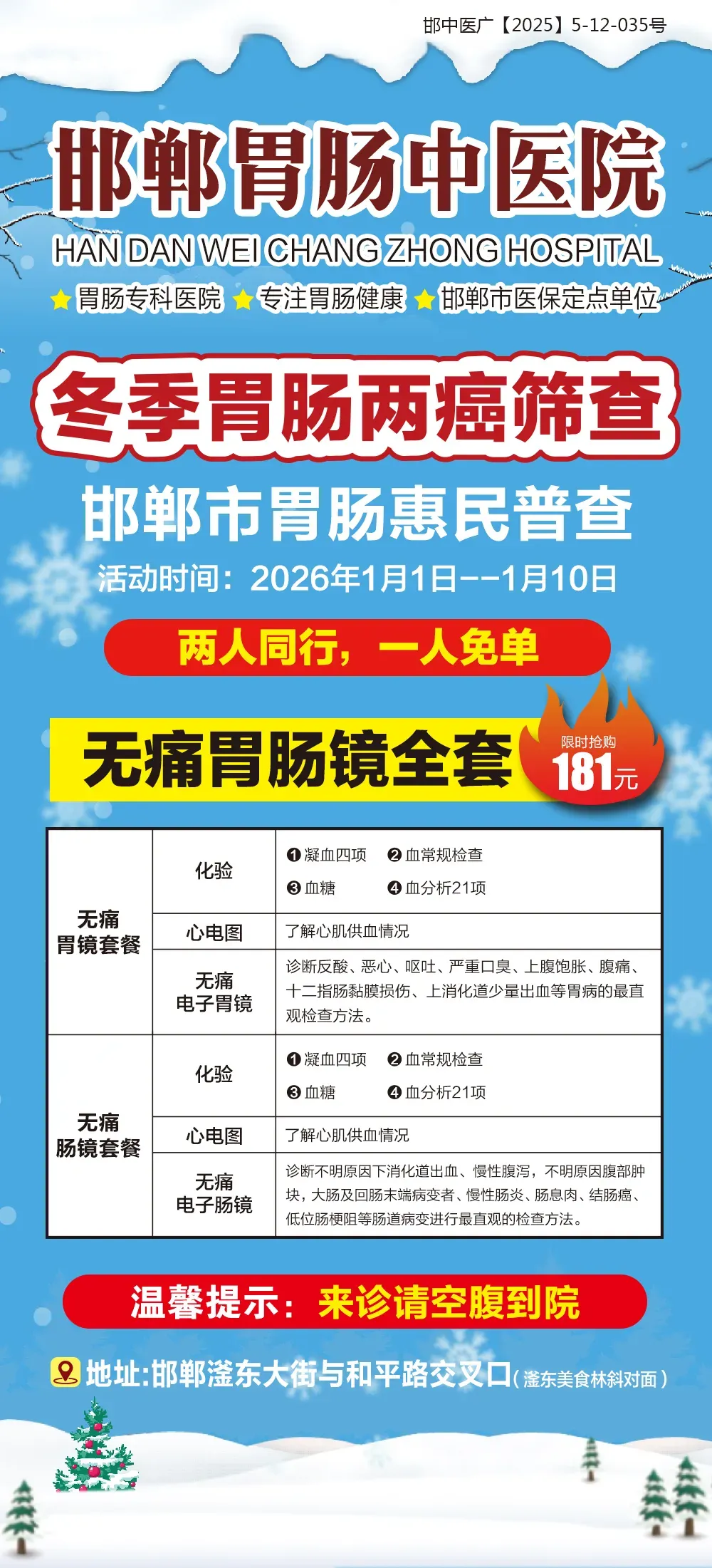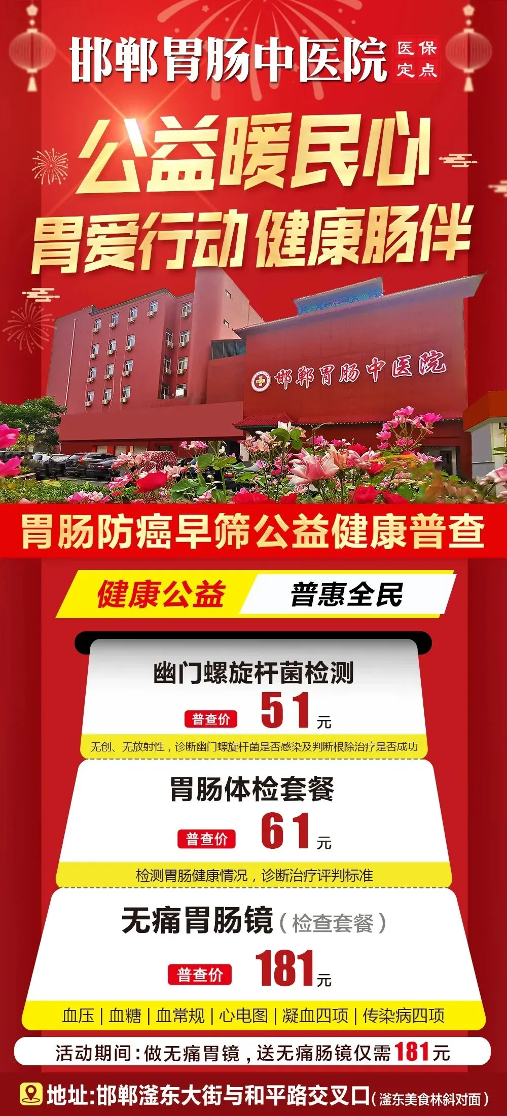 免责声明:本文来源于网络,版权归原作者所有,如涉及侵权,请及时联系我们删除。邯郸胃肠中医院,365天无假日医院,节假日期间,专家照常坐诊。坚持“专业、诚信、尊重、感恩”的管理理念,实现价格透明化,程序公开化,坚持把方便让给患者,把实惠送给患者,把温馨留给患者。被称为“咱邯郸老百姓自己的胃肠医院”。今天的科普有没有看懂呢~