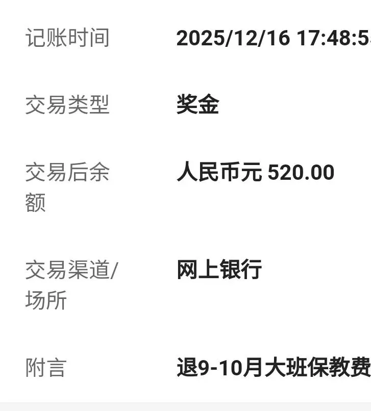大宝幼儿园大班,享受当地公立幼儿园保育费补贴,我们这是每月260块钱。幼儿园先给退了2个月的,剩下的每月自动抵扣。