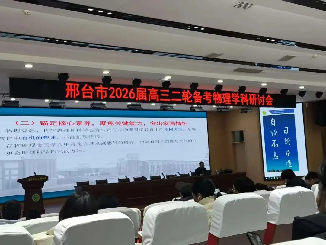 为优化高三物理备考策略,切实提升二轮复习实效,1月8日,邢台市高三物理二轮复习备考会在内丘中学日新楼一楼报告厅隆重举行。本次会议由邢台市教育科学研究所主办,内丘中学教科处精心承办,吸引了全市各高中物理骨干教师代表200余人齐聚一堂,共研备考良策。