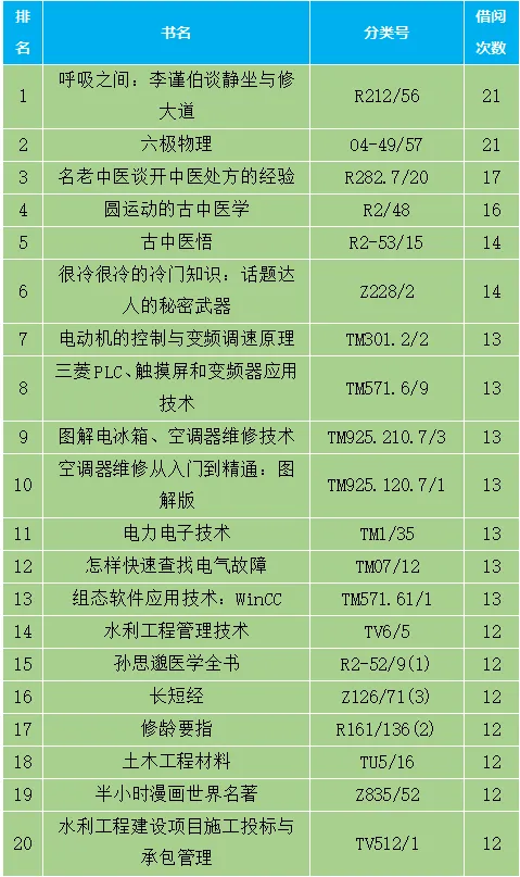 科技类文献借阅排行榜