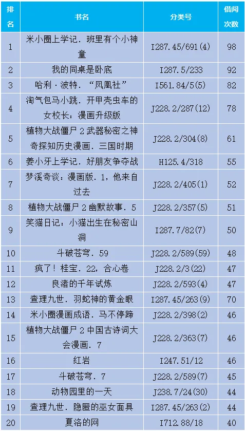 儿童类文献借阅排行榜
