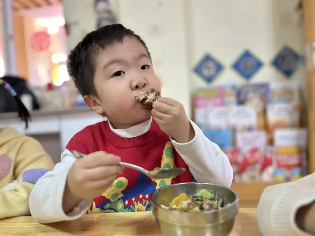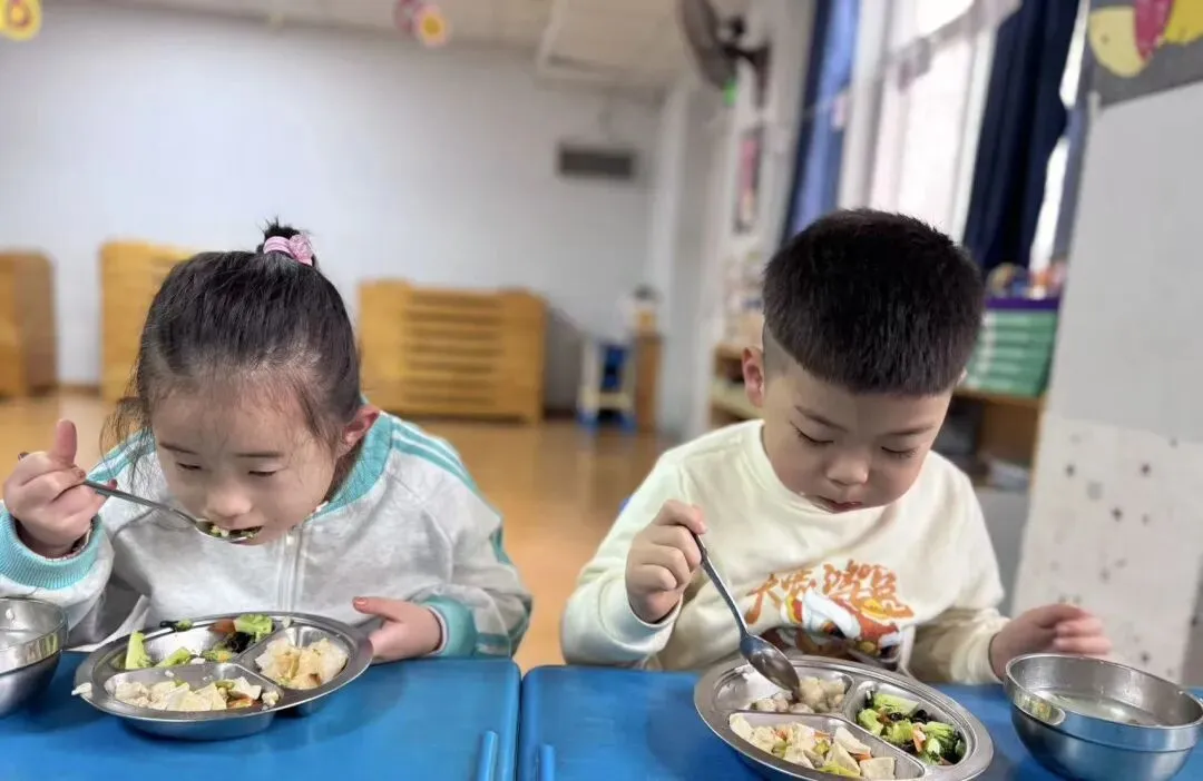 【午餐】:金银米饭红烧鸡块蒜蓉小白菜蘑菇炒肉山药芙蓉汤