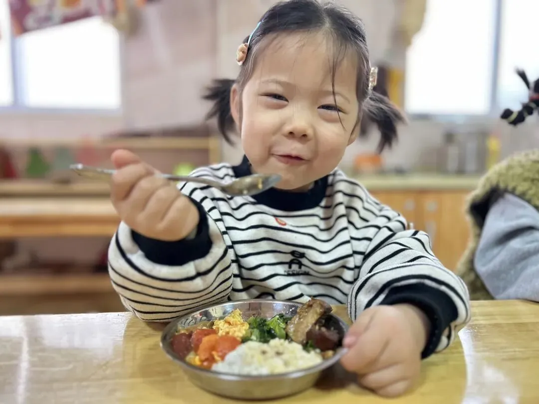 【午餐】: 玉米米饭太阳肉娃娃炒鸡蛋水晶翡翠青瓜枸杞汤