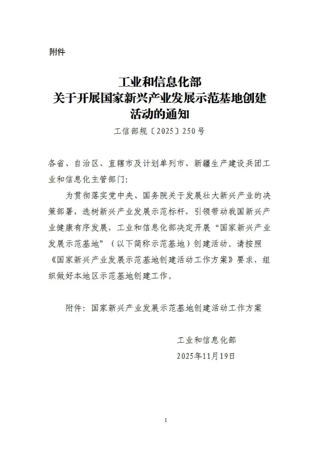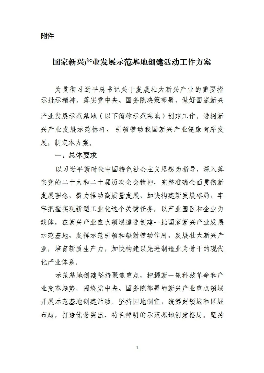 附件:关于开展国家新兴产业发展示范基地创建意向填报工作的通知