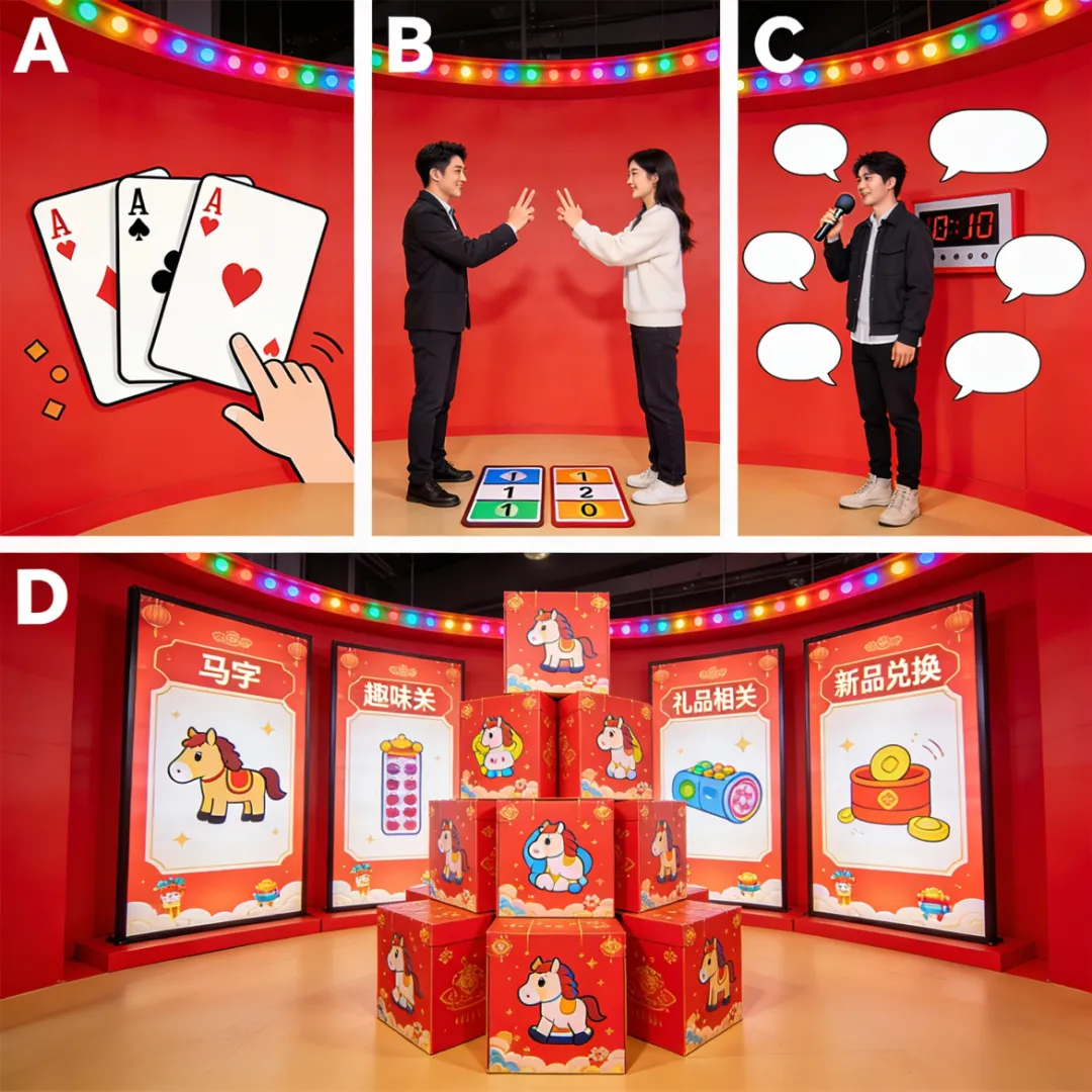 在园区内隐藏5种“福字”图案,游客寻找并收集,集齐后可在“馬馬福福快闪站”或寻找带小马符号的NPC(保安/保洁)兑换新年礼物。
