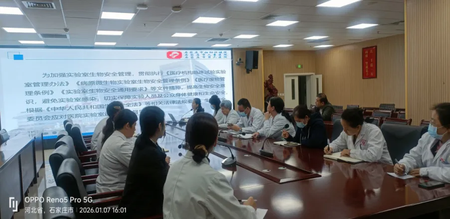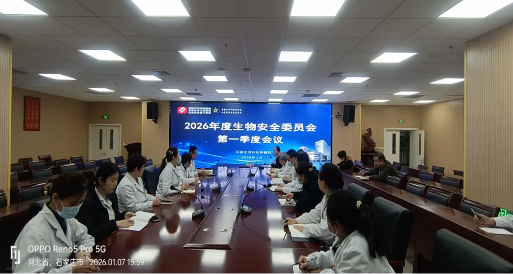 为认真贯彻落实《中华人民共和国生物安全法》《病原微生物实验室生物安全管理条例》等法律法规,切实加强医院生物安全管理, 2026年1月7日下午,石家庄市妇幼保健院召开2026年第一季度生物安全管理委员会会议。党委副书记、副院长张忠波,主管领导刘彦霞及生物安全管理委员会全体委员、相关实验室负责人参加会议,会议由科教科孙素丽主任主持。