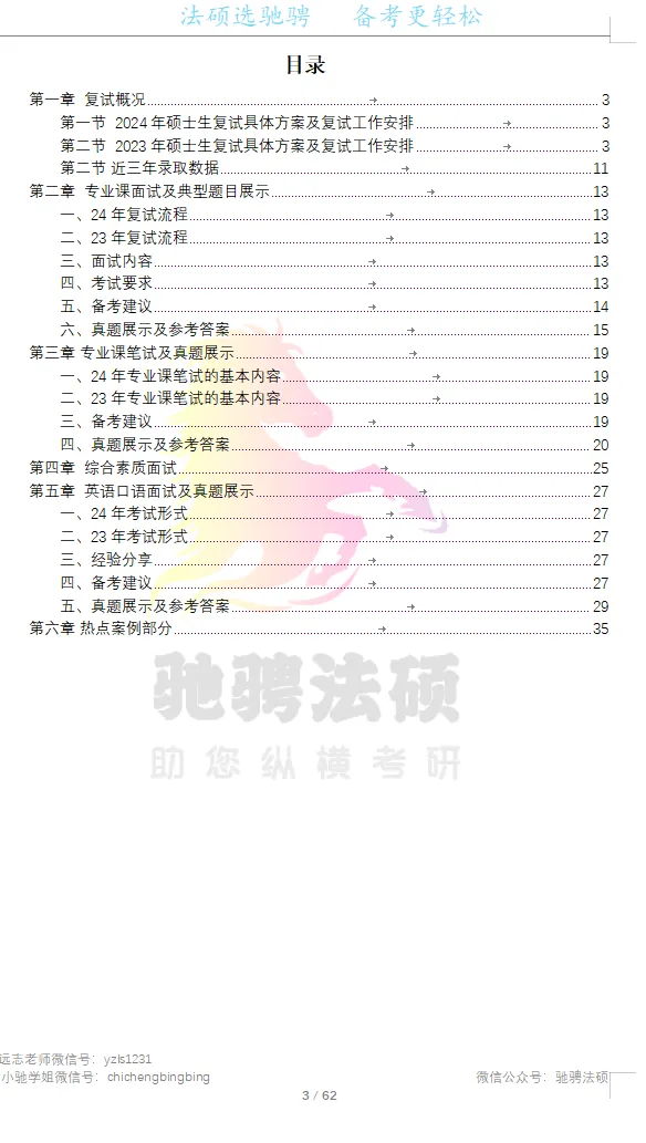 若需要石家庄铁道大学近年来全部真题及参考答案,可以使用石家庄铁道大学法硕复试指南资料,基本上每年备考考生每人人手一本。内容具体包含石家庄铁道大学法硕复试概况,线上、线下复试流程,近年来专业课复试真题及参考答案,复试笔试真题,英语面试真题及模板等资料(资料目录截图如下)
