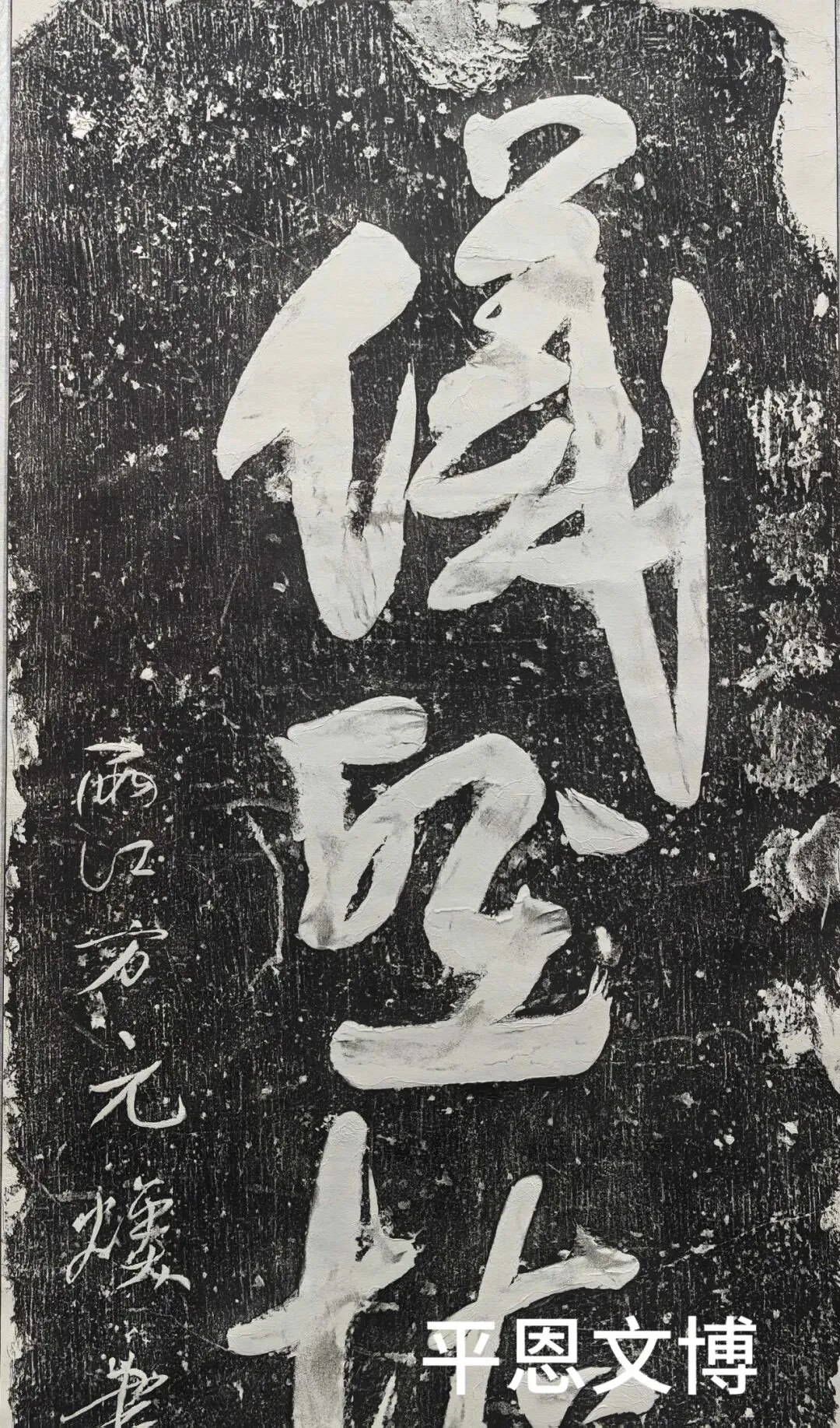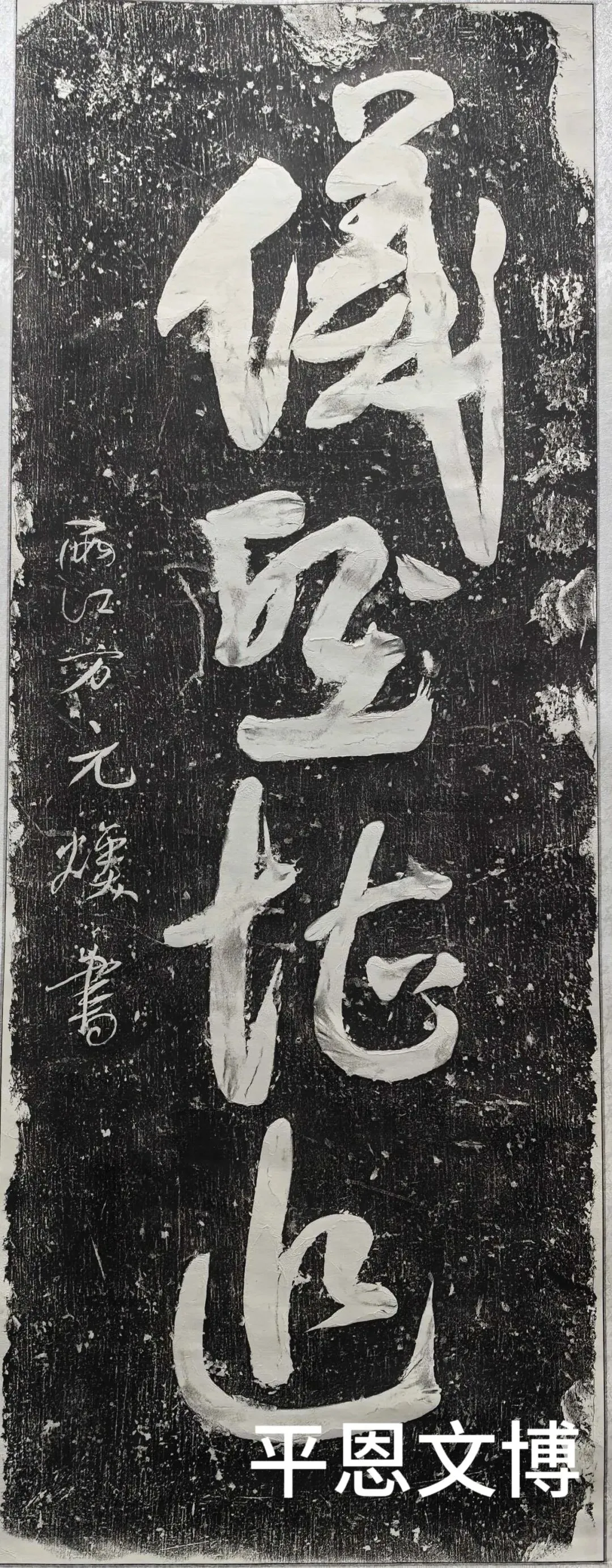 碑为青石质地,高179厘米,宽60厘米,厚22厘米。碑文为草书,4大字,两侧共12个小字,其右侧小字不知因何事,早年被砸,现已分不清。字体采用草体书写,四大字,苍劲有力,意向高远,书法艺术水平极高,原矗立于邱城某处,石碑少有缺损,但大体无碍。现存于我馆展出。