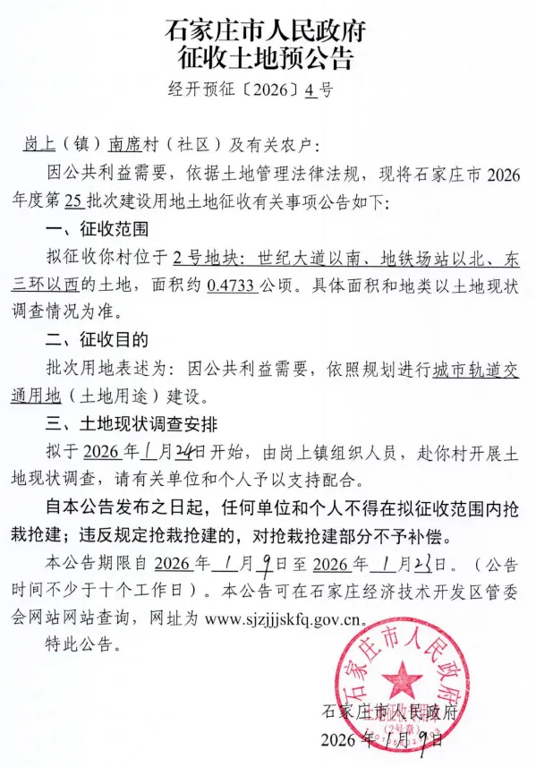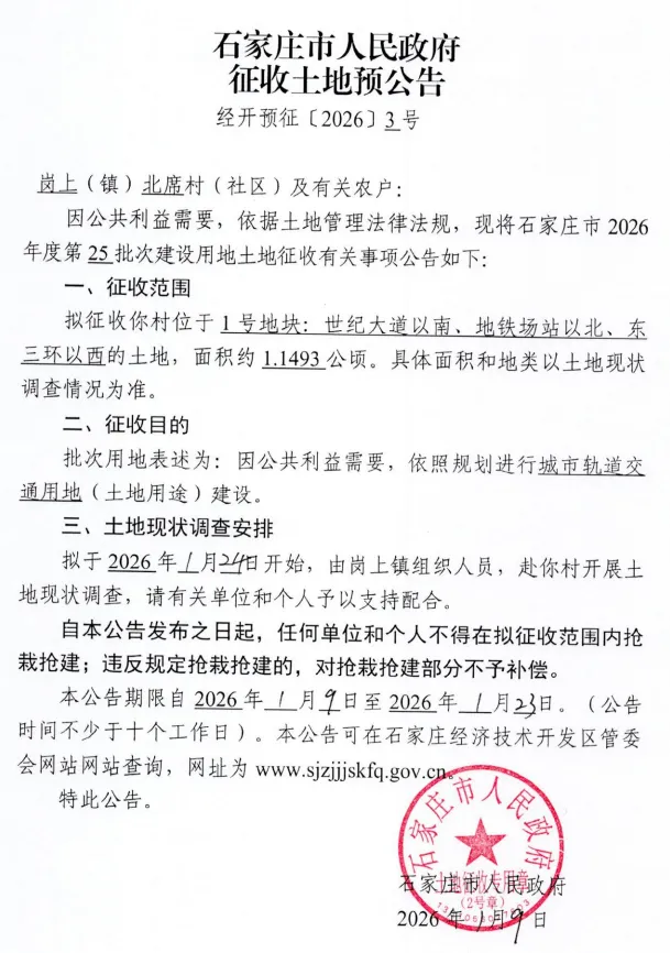 >石家庄市人民政府征收土地预公告 经开预征[2026]3号、4号