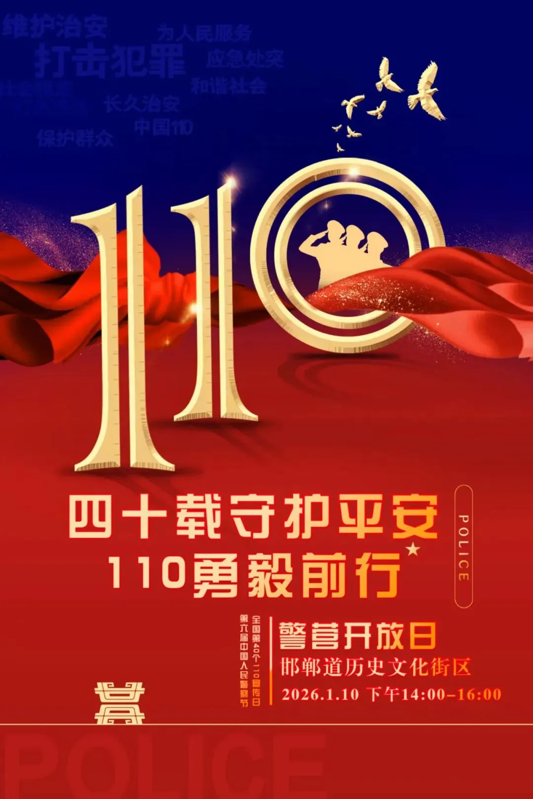 2026年1月10日是第六个中国人民警察节,也是全国公安机关第40个110宣传日,我们即将迎来属于人民警察的光荣节日!为增进警民互动,展示警队风采,普及法律知识,邯郸市公安局特举办“警营开放日”主题活动,诚邀您和您的家人朋友,共赴这场平安之约!