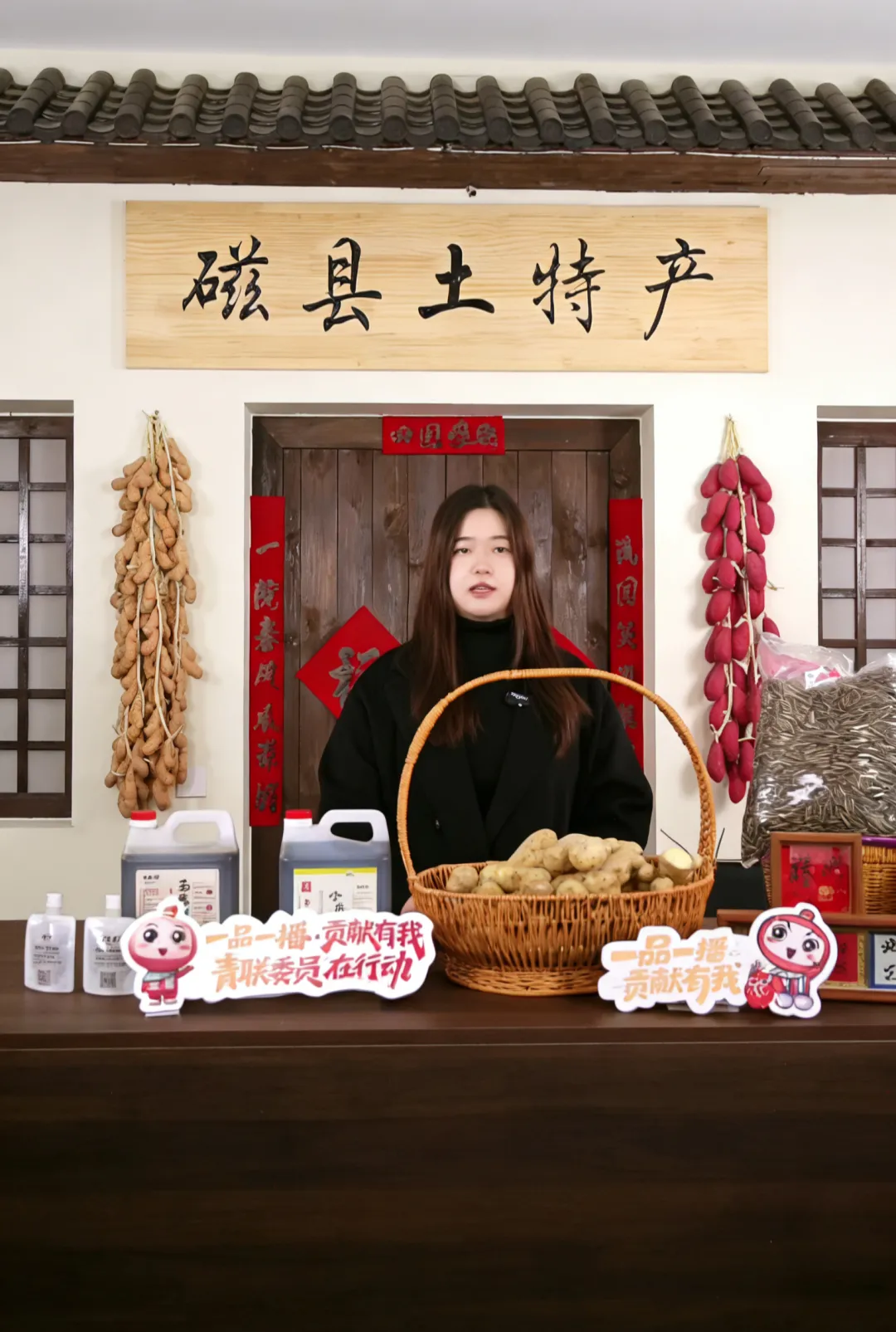 为认真贯彻落实市委十届十一次全会、团省十六届常委会第四次(扩大)会议精神,持续助力邯郸地区农特产品上行和文旅宣介,充分发挥青联委员、青年创业者的示范带动作用,引领广大团员青年在乡村振兴、促消费、助文旅等方面贡献青春力量,1月9日,由共青团邯郸市委、邯郸市青年联合会、邯郸市一品一播网络科技集团有限公司主办,共青团磁县县委、磁县一品一播贸易有限公司、邯雪优选清真食品有限公司承办的“一品一播·贡献有我——青联委员在行动”助农直播磁县专场火热开展。