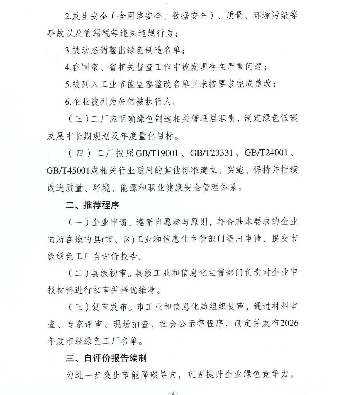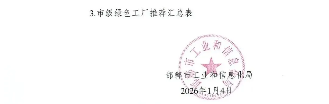 >邯郸市 | 关于组织推荐2026年市级绿色工厂的通知
