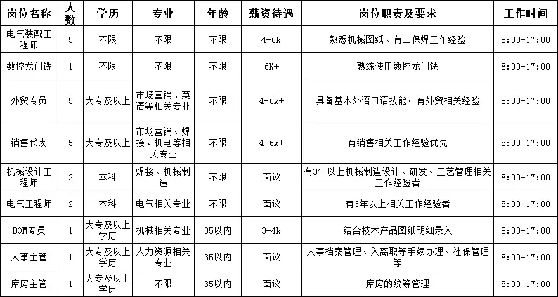 河北创力机电科技有限公司提供行业内有竞争力的薪酬和福利,缴纳五险,免费住宿、就餐补助、出差补助、免费旅游、团建等。