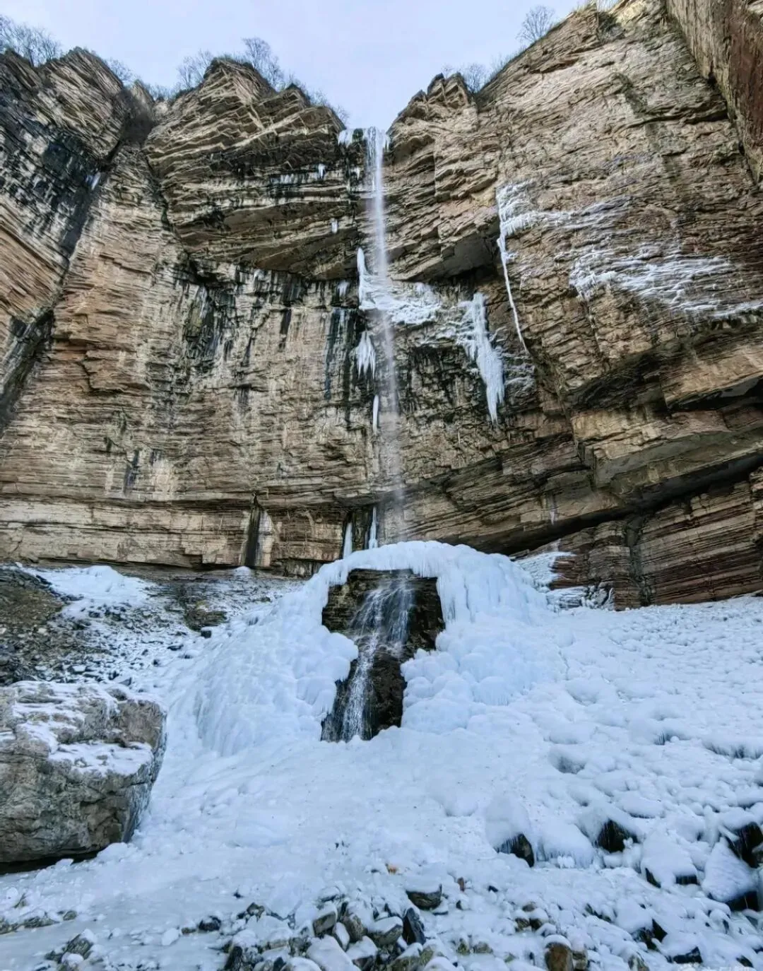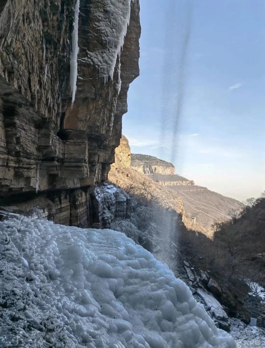 • 冬日限定冰瀑:冰挂垂帘、冰瀑凝霜,一步一景美到窒息,随手拍都是冬日大片!