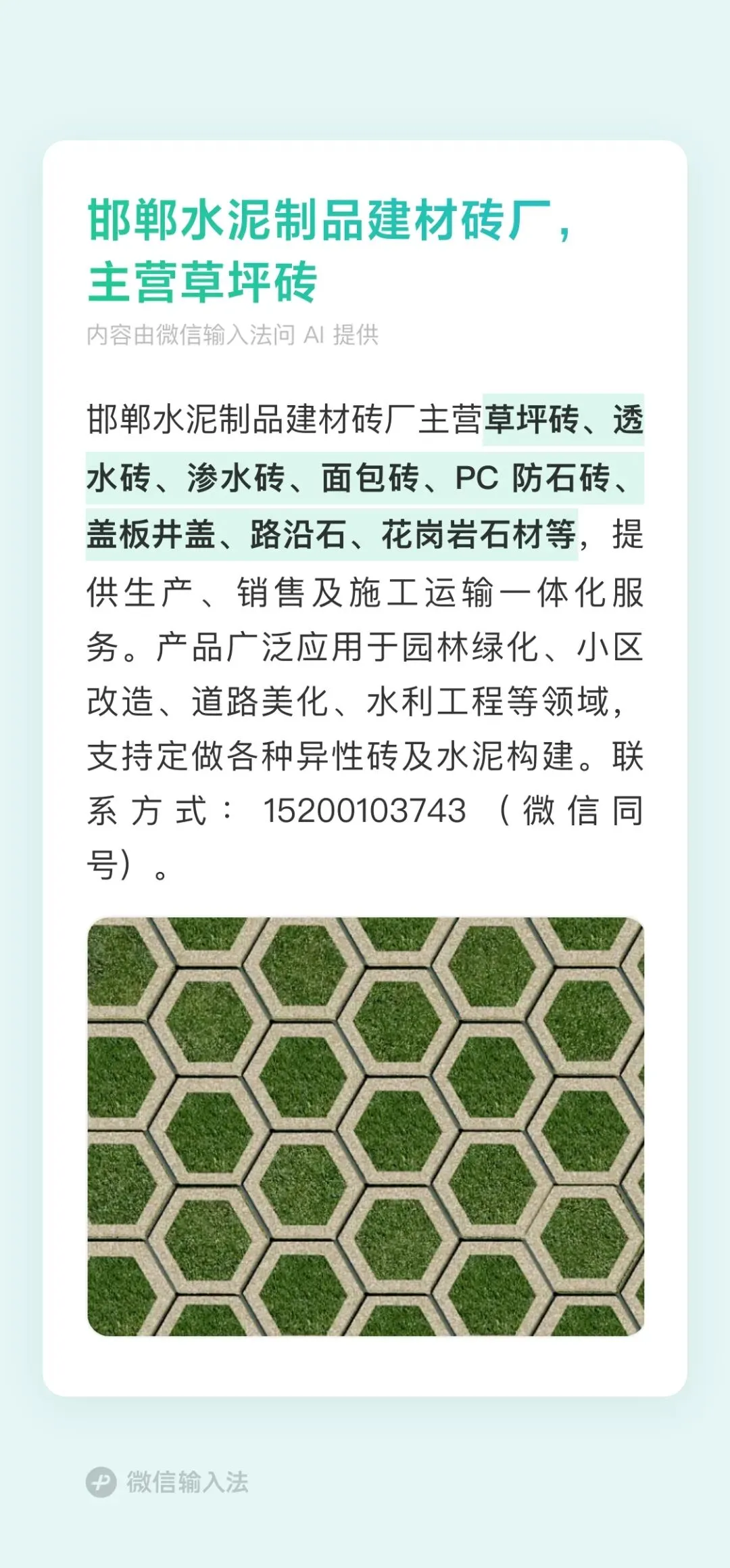 邯郸建美水泥制品砖厂草坪砖