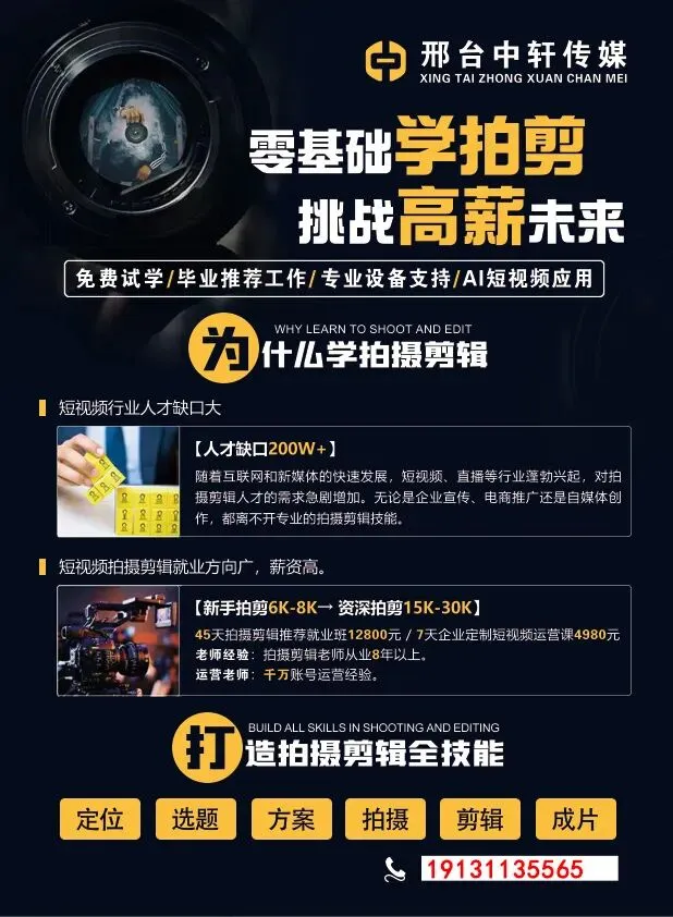 邢台中轩拍摄剪辑学校招生报名了!!!