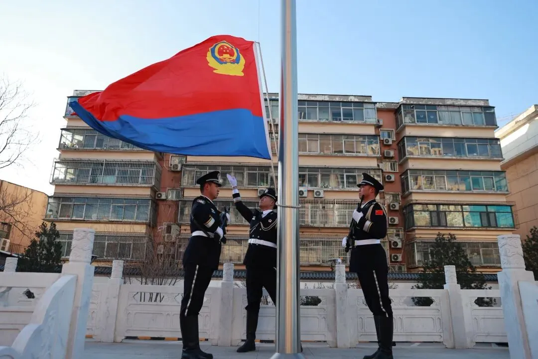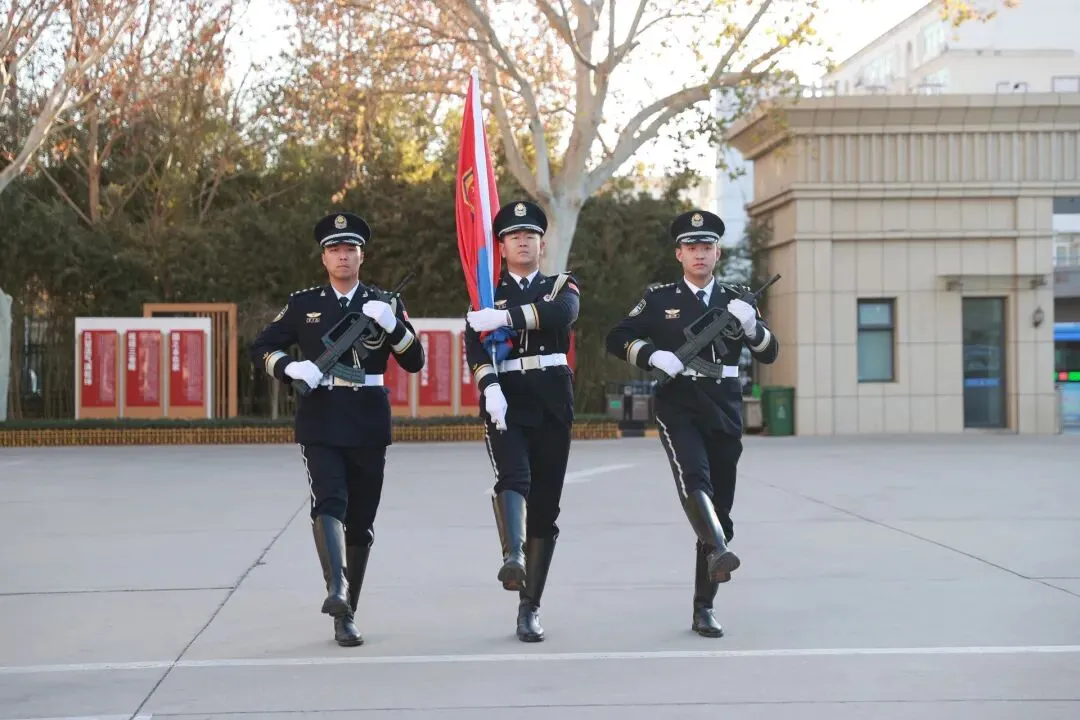 上午9时,护旗礼兵迈着铿锵有力的步伐,护送着中国人民警察警旗入场,伴随着庄严的警歌,警旗冉冉升起迎风飘扬。全体民辅警面向警旗庄严敬礼。