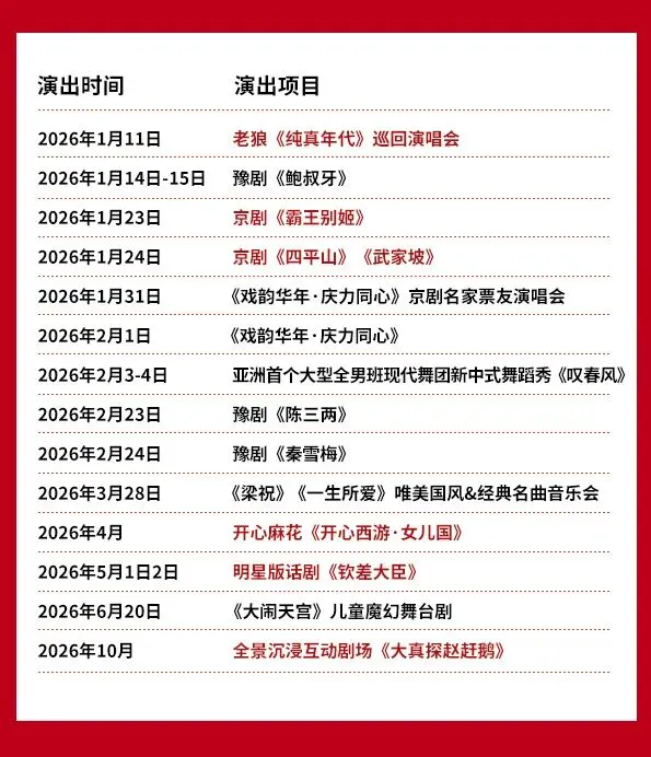 2026精彩演出预告第一波,更多精彩演出持续更新中......