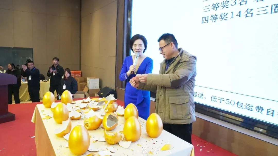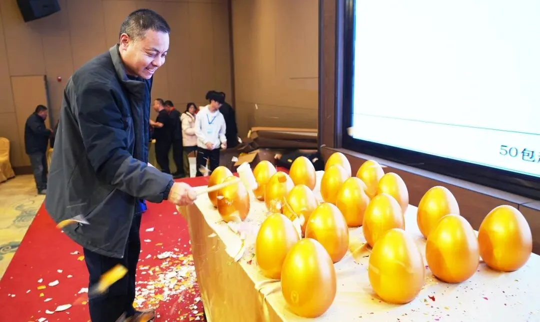 活动现场精彩纷呈。舞狮、萨克斯、变脸、歌舞表演雅俗共赏,轮番登场,现场气氛十分活跃。河北邯郸凯鹏贸易有限公司总经理吴雪峰随即上台做政策宣讲,通过砸金蛋抽奖活动,掀起现场阵阵签单热潮,不少经销商当场表达合作意向,纷纷完成预留款缴纳,交流声此起彼伏。